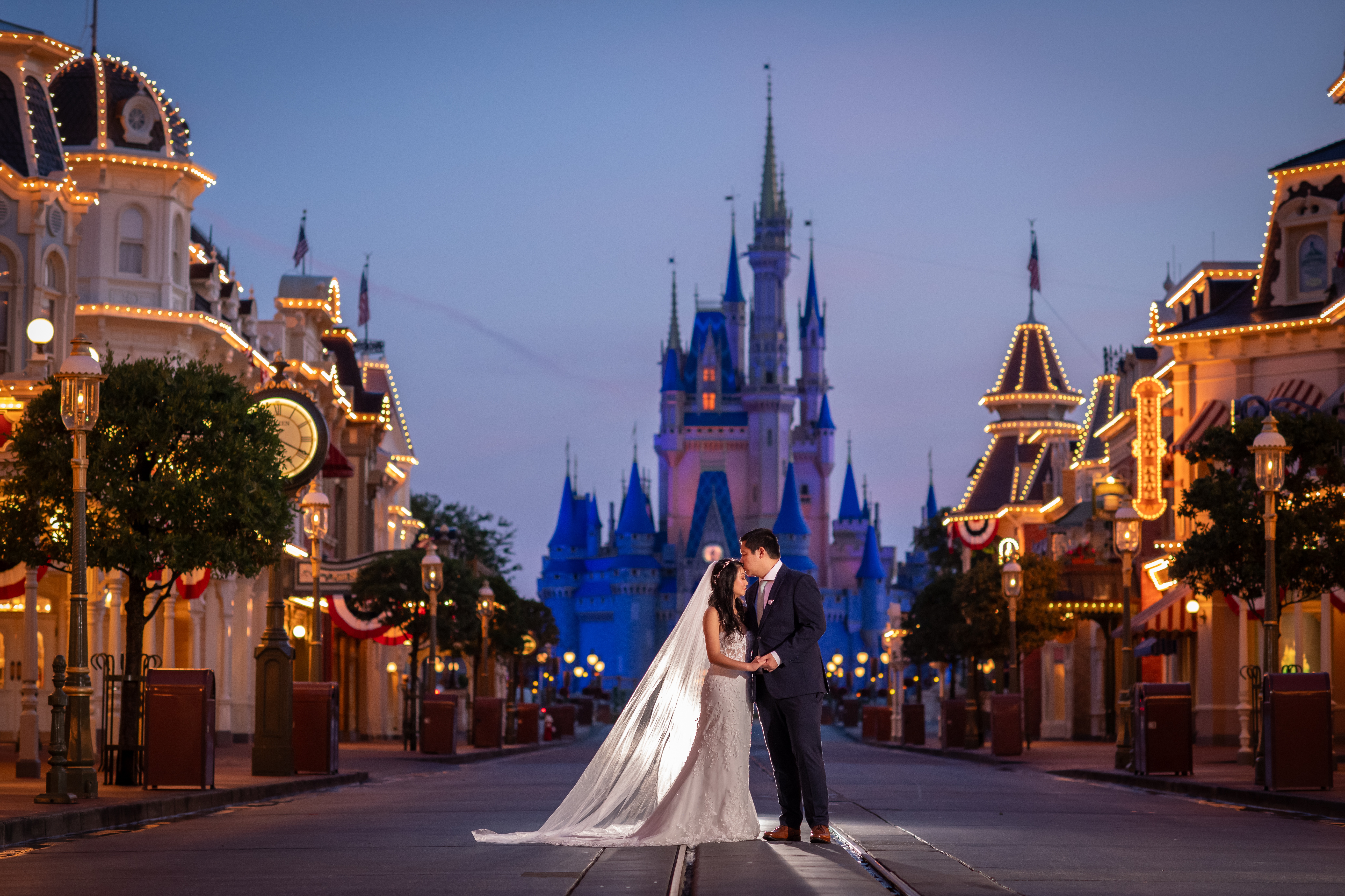These photos were amazing! Assuming the wedding was in the AM at EPCOT which is so pretty, it's like golden hour. How did you get the amazing MK castle pic?